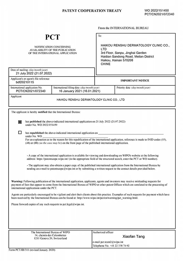 目前,这项技术已获得国家专利和国际PCT专利的双重认证,并在国际权威期刊发表SCI论文,是一项经过真实案例验证和科学依据支持的创新疗法。如今,该技术已授权在天津外商独资医院正式投入临床应用。如果您或您的家人正受白癜风困扰,欢迎到院面诊咨询。