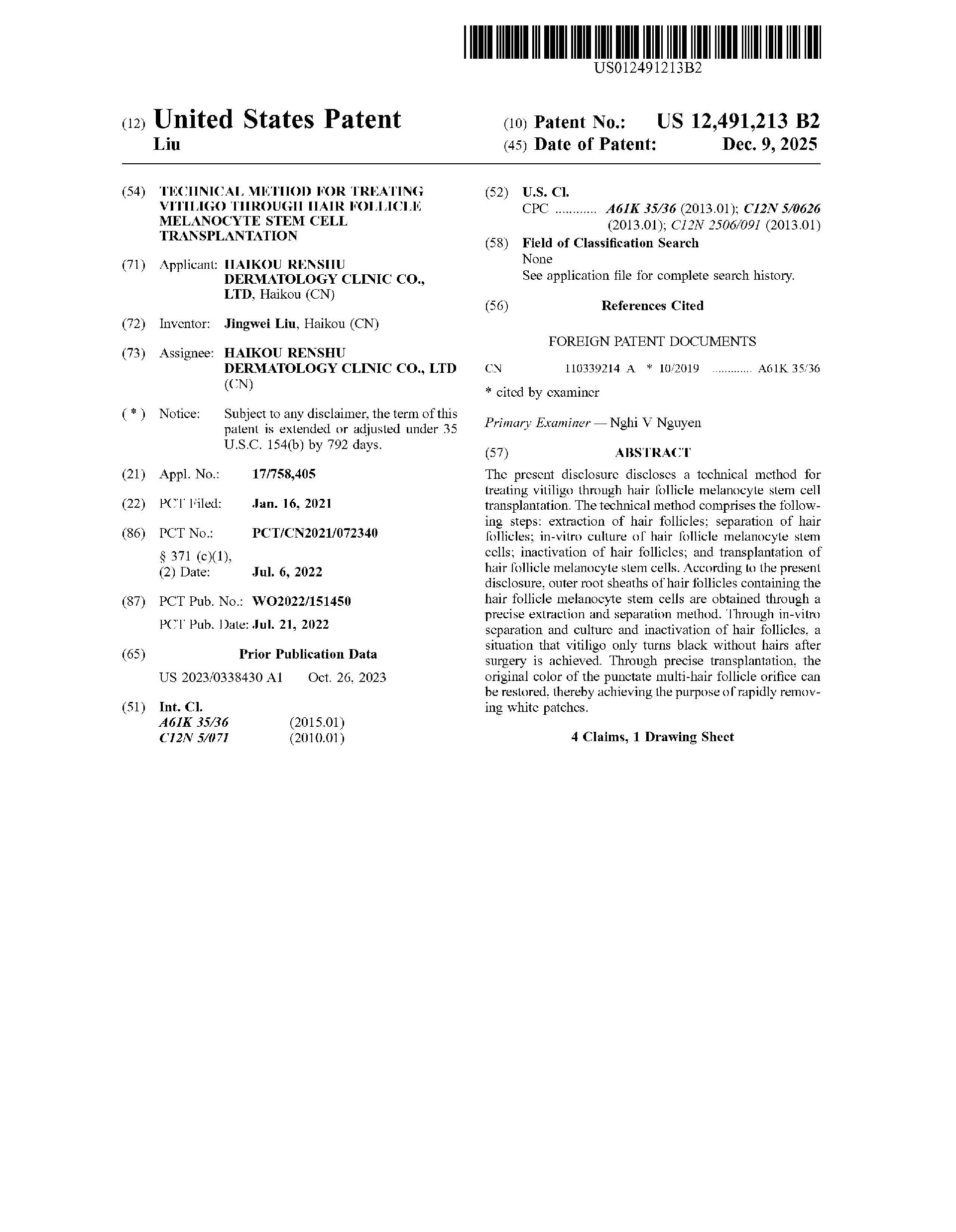 当白斑进入稳定期,药物和光疗效果不佳时,移植治疗就能实现“精准复色”。传统移植术需要从健康皮肤取皮、在白斑处磨皮,创伤大,还不适合嘴唇、关节褶皱等特殊部位。而由我国专家刘景卫研发的“完整的外毛根鞘移植术(专利号:ZL201910769979.1)”,解决了这些难点,还拿下了国家、美国及国际PCT专利,核心优势具体如下:
